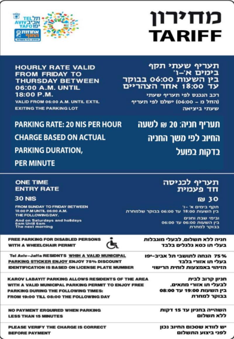 רכב הנכנס לפי תעריף שעתי החל מ-06:00 ישלם לפי תעריף שעתי ביציאה