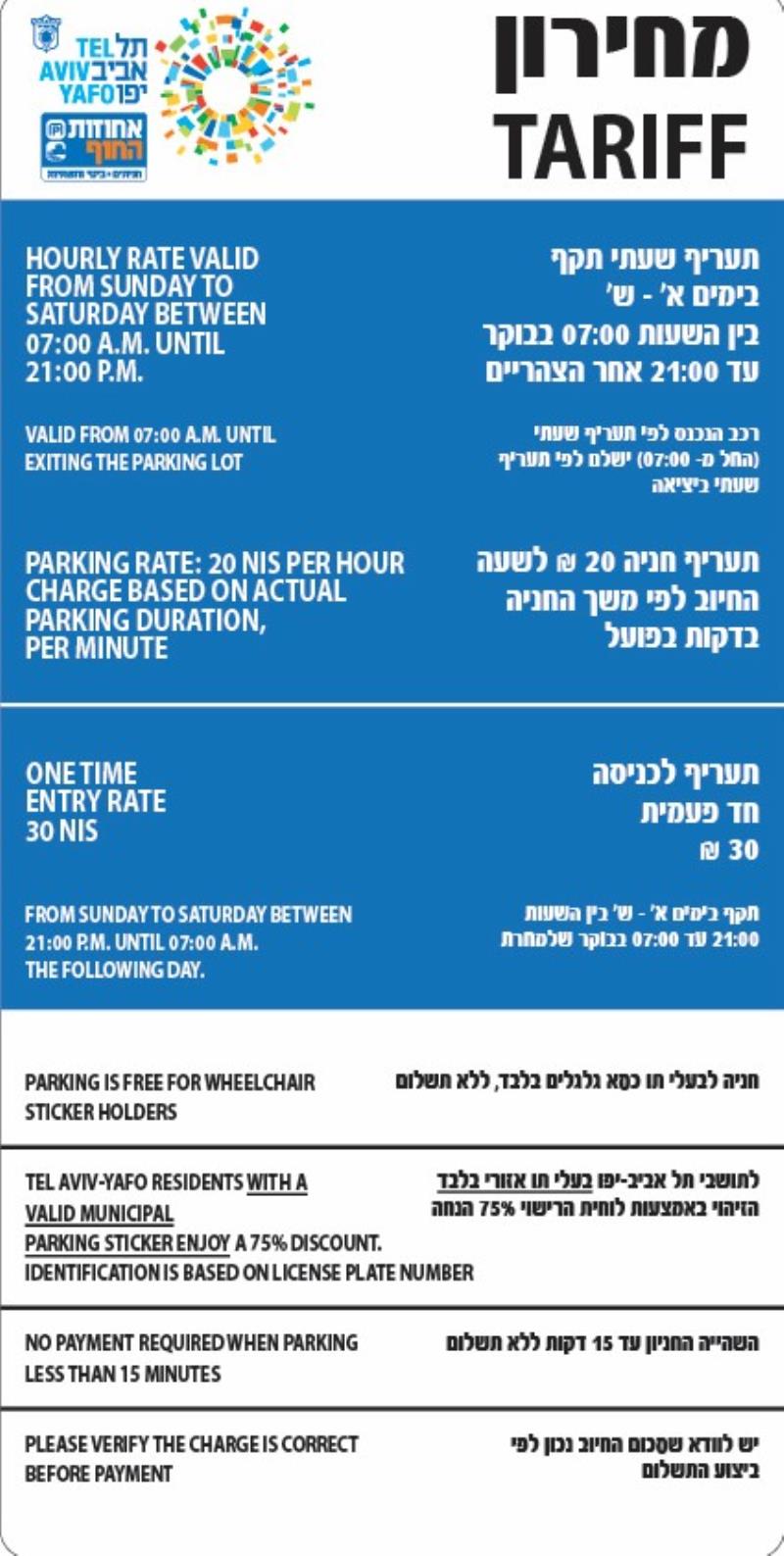 רכב הנכנס לפי תעריף שעתי החל מ-07:00 ישלם לפי תעריף שעתי ביציאה