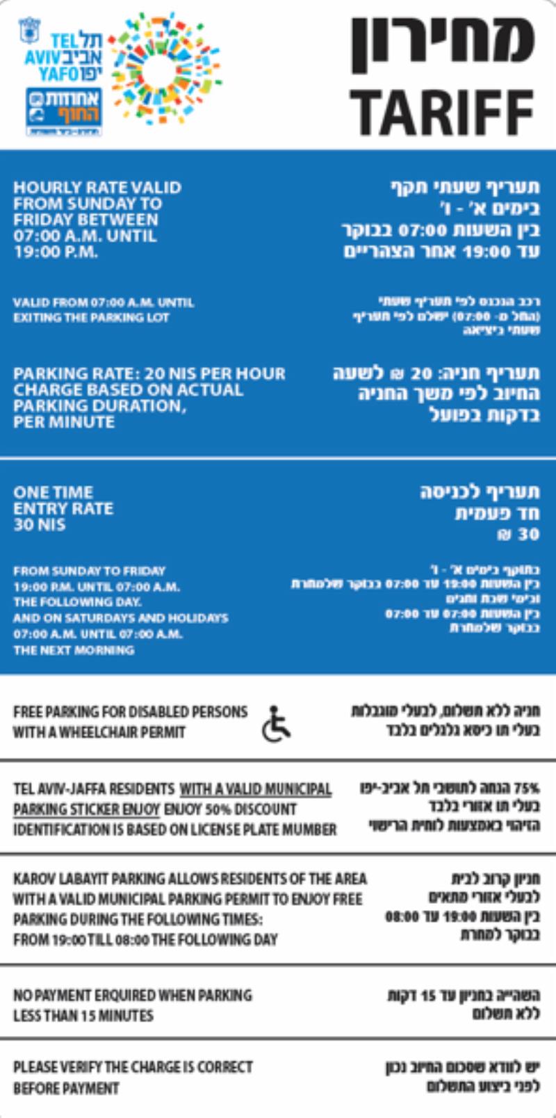 רכב הנכנס לפי תעריף שעתי החל מ-07:00 ישלם לפי תעריף שעתי ביציאה